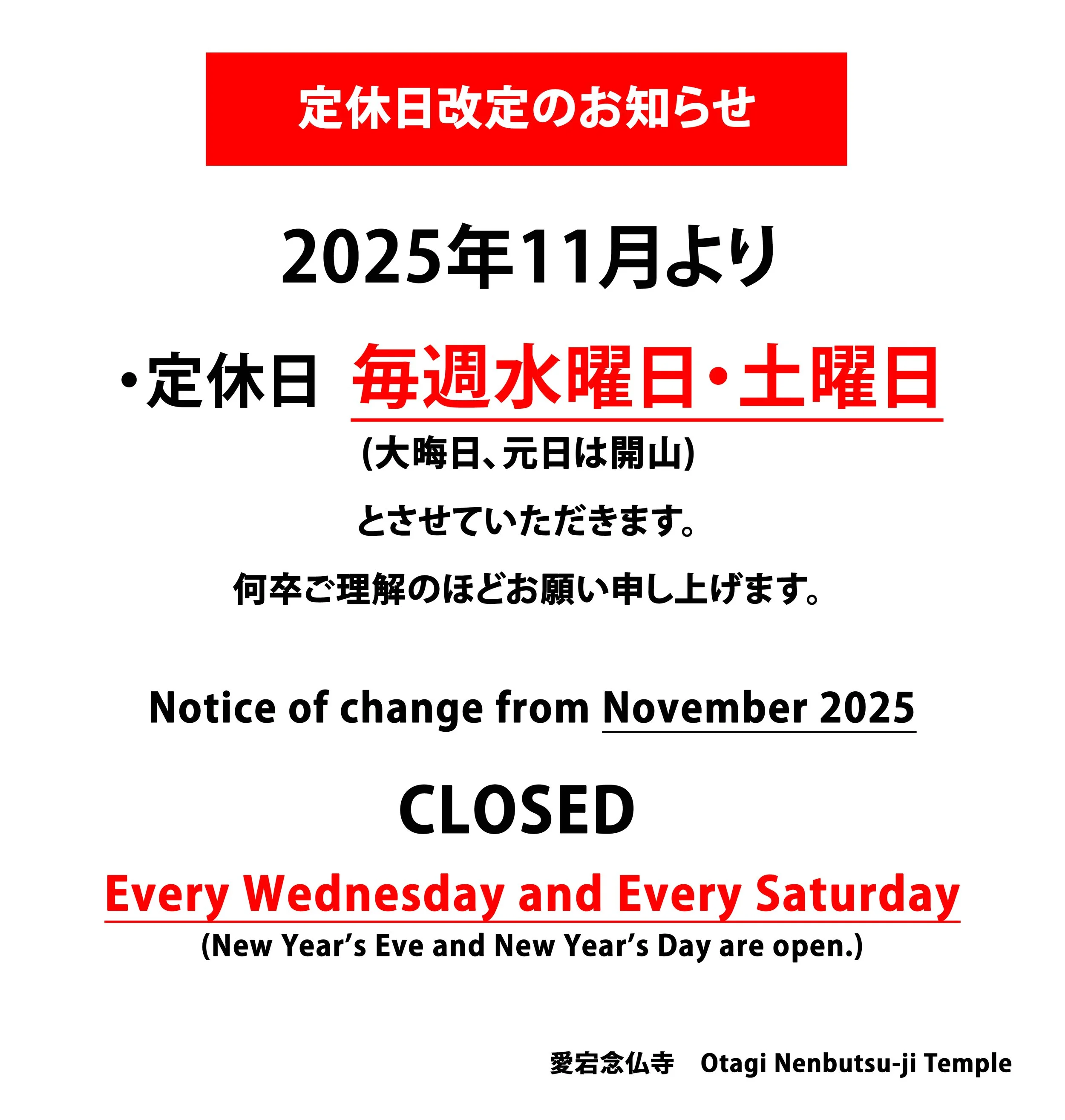 The easiest way to get to our temple is by taxi. We highly recommend starting your time in Arashiyama with a visit to our temple and then walking down to the bamboo forest and Togetsukyo Bridge area.
